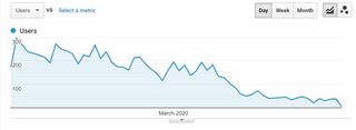 Wie Sie in der obigen Grafik sehen können, wird die Sichtbarkeit der Seite nicht unmittelbar reduziert. Die eingestellte Aktivität spiegelt sich erst nach wenigen Wochen in den Seitenergebnissen wider, wenn die zuvor erlangten Positionen von Mitbewerbern besetzt sind.