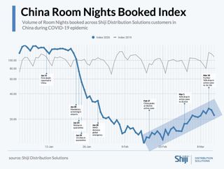 Die folgende Grafik zeigt die Anzahl der in China gebuchten Zimmernächte. Wie Sie sehen können, nehmen das Interesse an der Branche und die Reservierungen langsam zu.