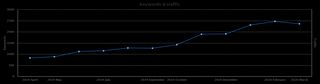 Um die positiven Auswirkungen langfristiger Positionierung von Hotelwebseiten zu veranschaulichen, haben wir Diagramme erstellt, die die Sichtbarkeit der Hotelwebseite (die Anzahl der Phrasen, für die die Seite in den Google-Ergebnissen sichtbar ist) und den von der Suchmaschinenseite erhaltenen Verkehr aufzeigen.